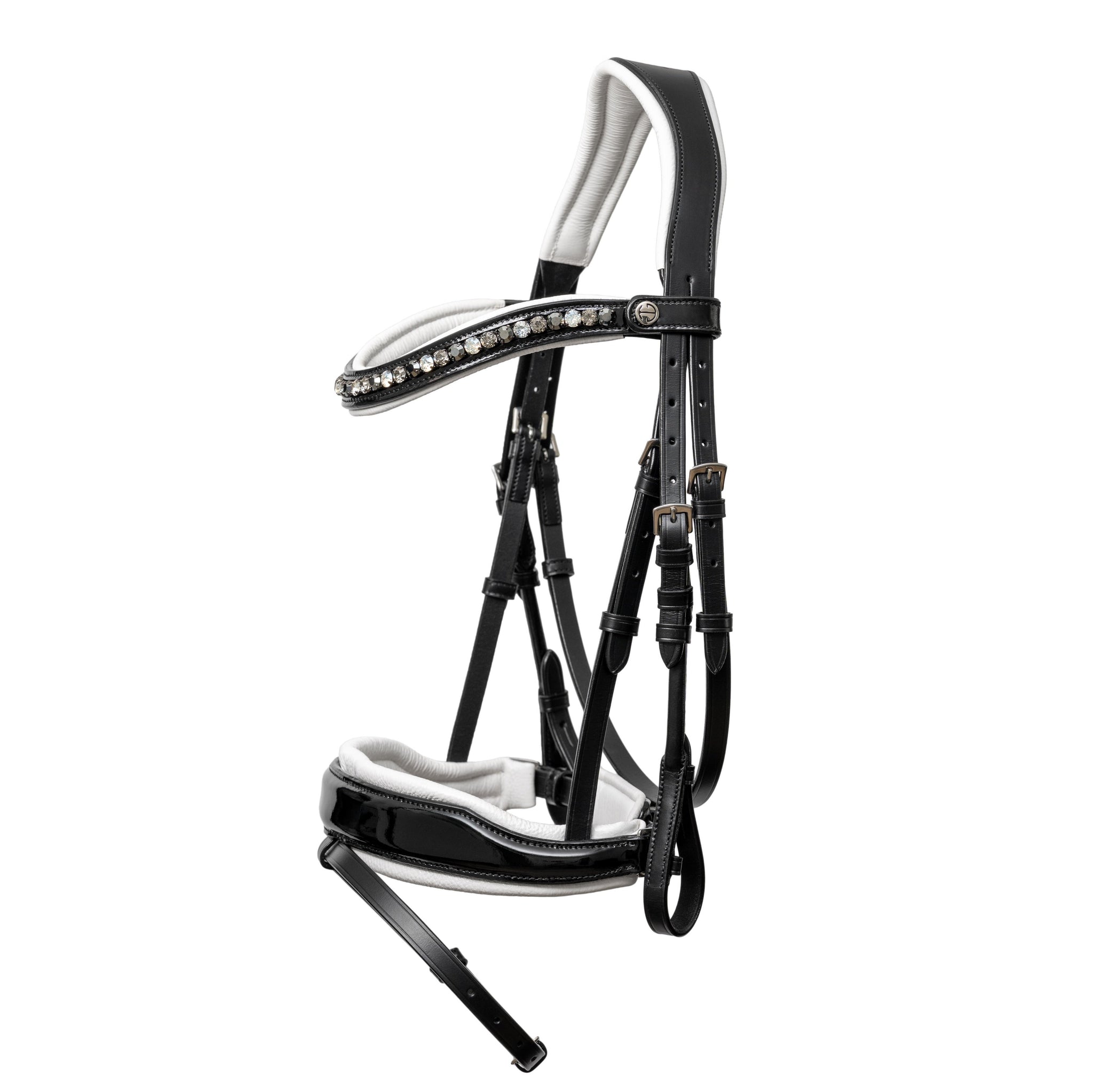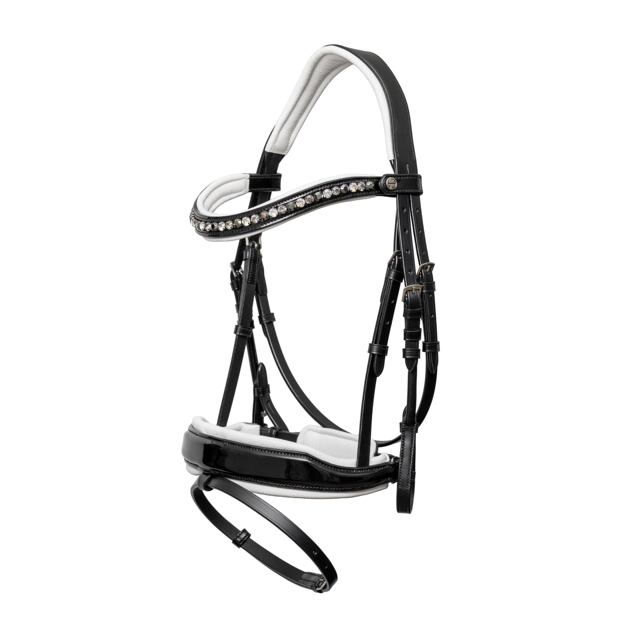 ❄️ The Mont Blanc Snaffle Bridle – Patent Leather | White Textured Padding | Austrian Crystals