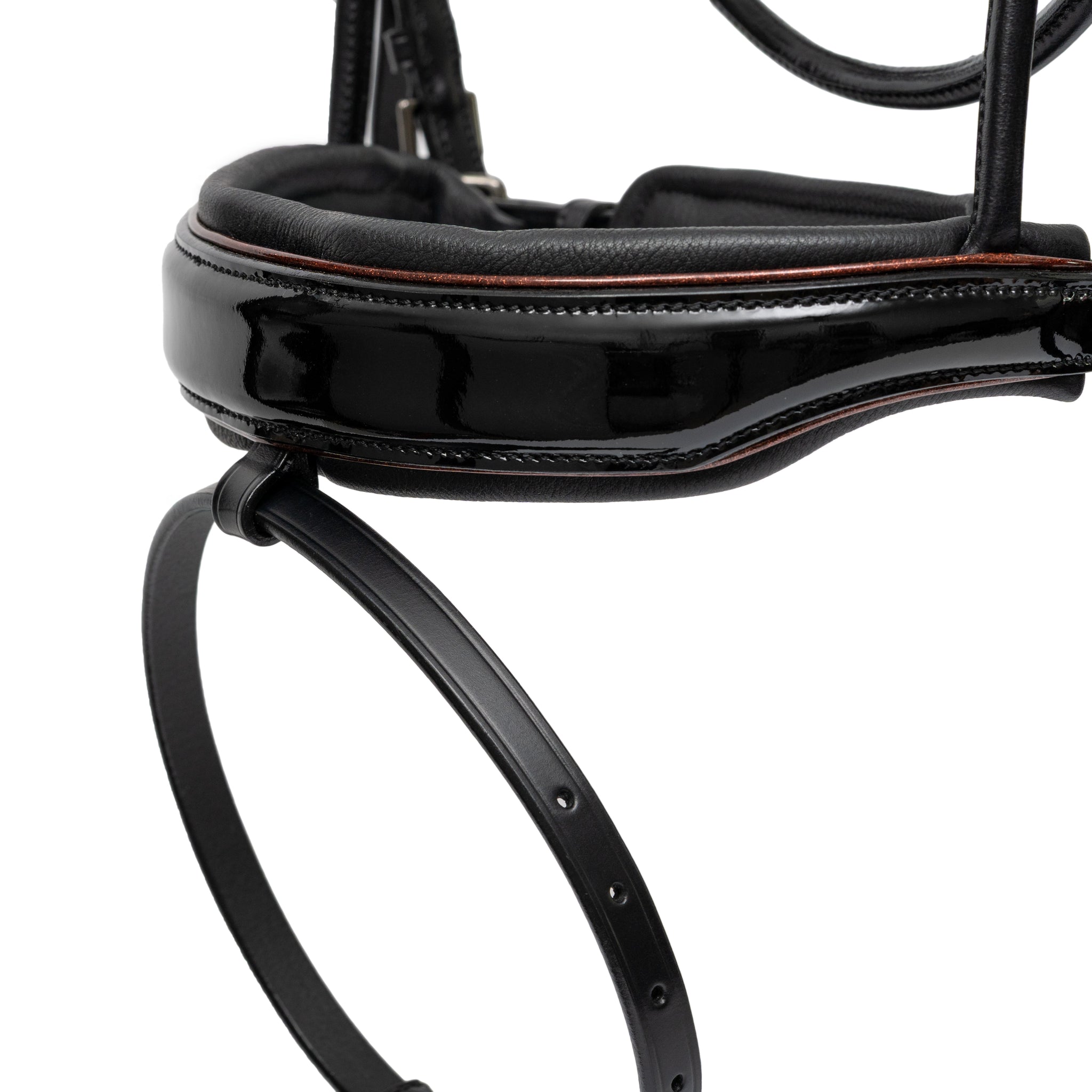 • Anatomical Black Patent Noseband with cut-out on the under-side of the noseband.