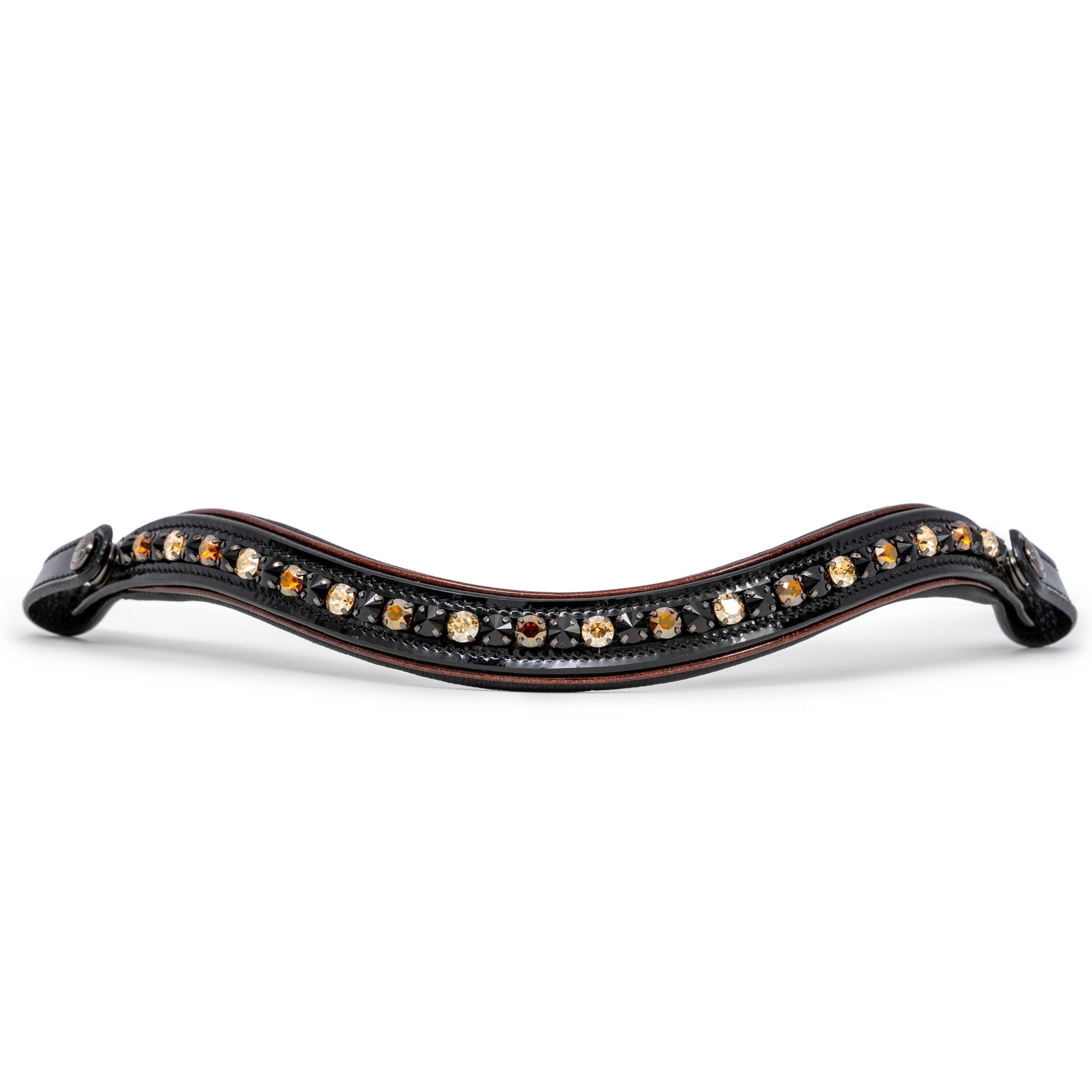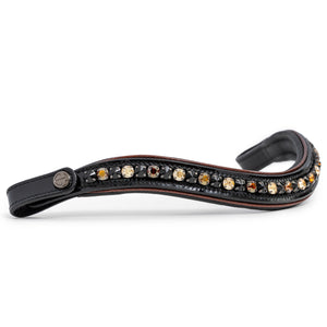 • Alternating Austrian crystal browband design with limited edition coated burnished Topaz, Golden Shadow & Jet Black Chaton & Rivoli crystals.