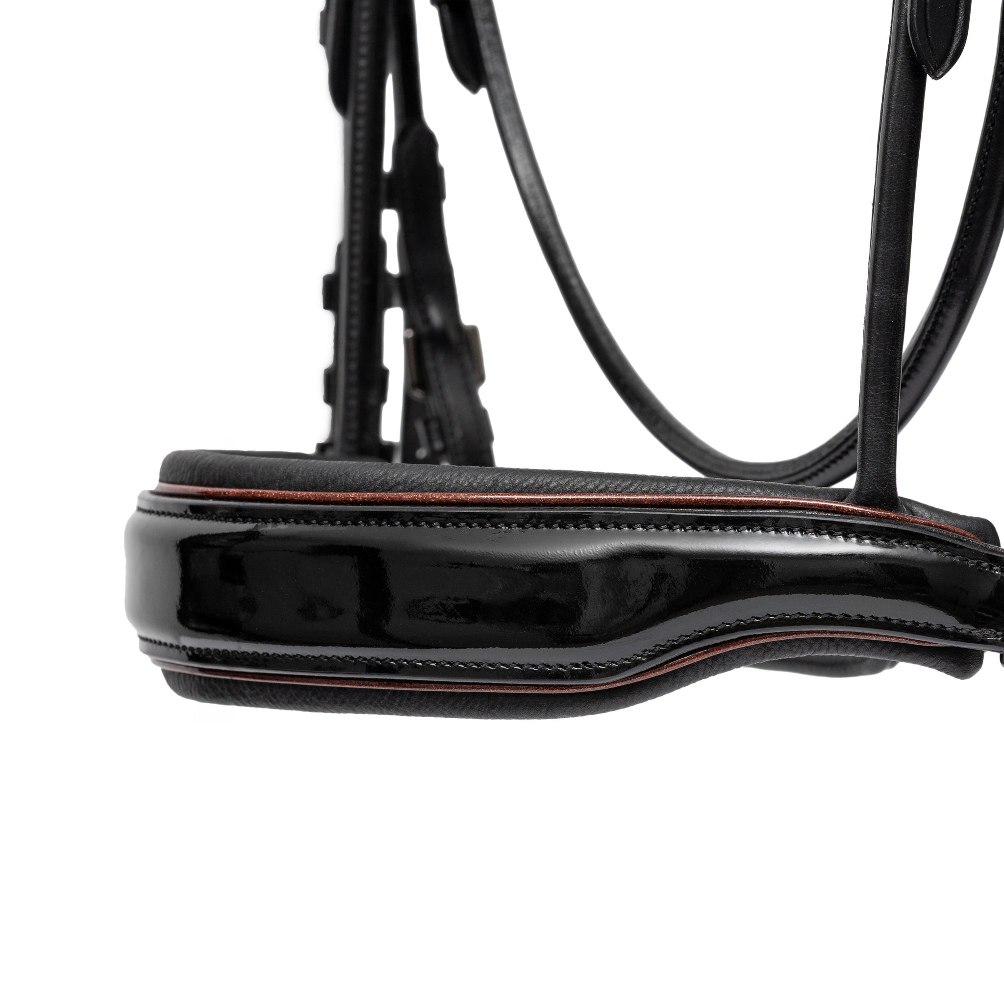 - Anatomical Black Patent Noseband with cut-out on the under-side of the noseband.
