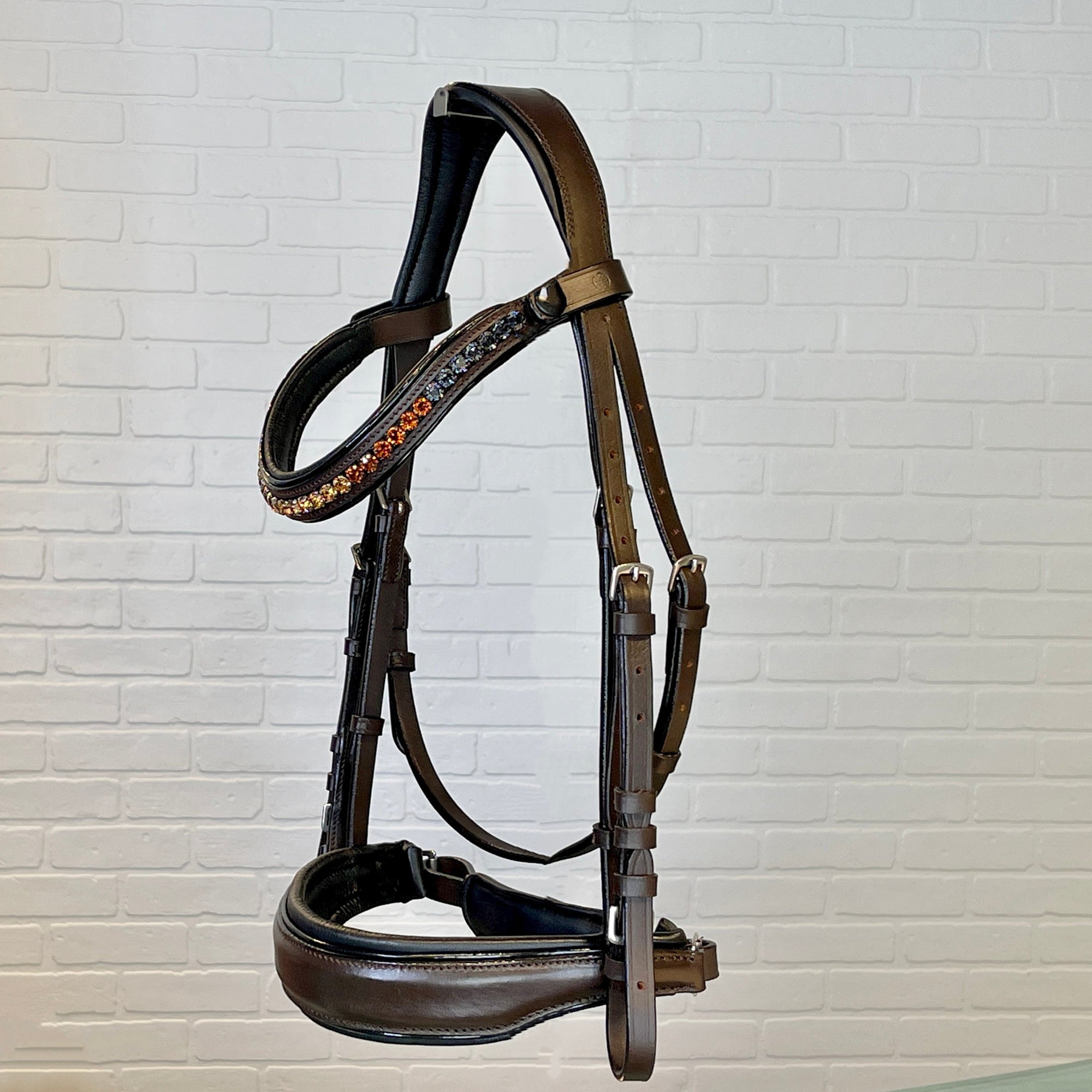 The Sarah - Maple Brown Leather Snaffle Bridle with Removable Flash
