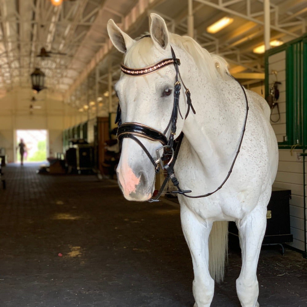 Ultimate Rose Gold Black Patent Snaffle Bridle