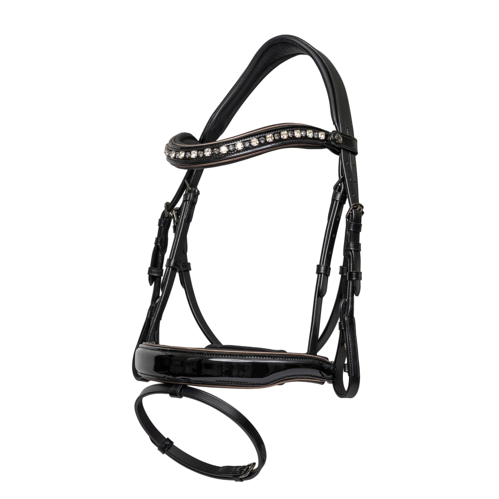 🤎 The Aachen Rolled Black Patent Leather Snaffle Bridle