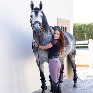 Carefully designed with comfort, style and exceptional fit in mind. These breeches feature innovative, moisture wicking tech fabric, silicone grip inside the waistband to keep your shirt tucked in, and silicone logo grip on the seat. The embroidered logo, contrast piping and trim add the perfect amount of subtle and chic detailing to keep you looking fashionable in and out of the saddle!