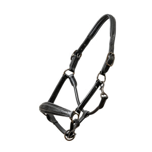 Vegetable tanned Italian leather, embossed and treated to create the most gorgeous Black Croc Padded Halter.