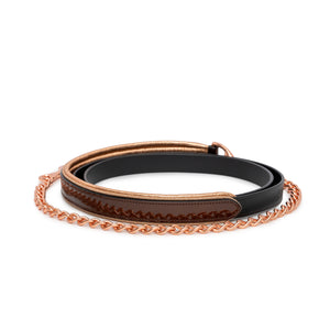 Complete the look with the Gilded Mocha Lead Shank—a luxurious, metallic bronze patent leather lead finished with rose gold chain hardware.