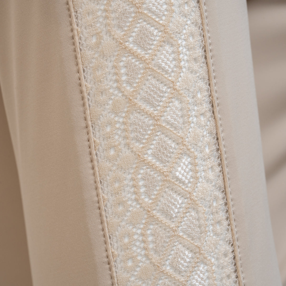 Crafted from ultra-soft, moisture-wicking 4-way stretch fabric that moves effortlessly with you. A signature Art Deco lace panel runs the length of the arm—adding breathability, dimension, and a quiet statement that sets it apart.