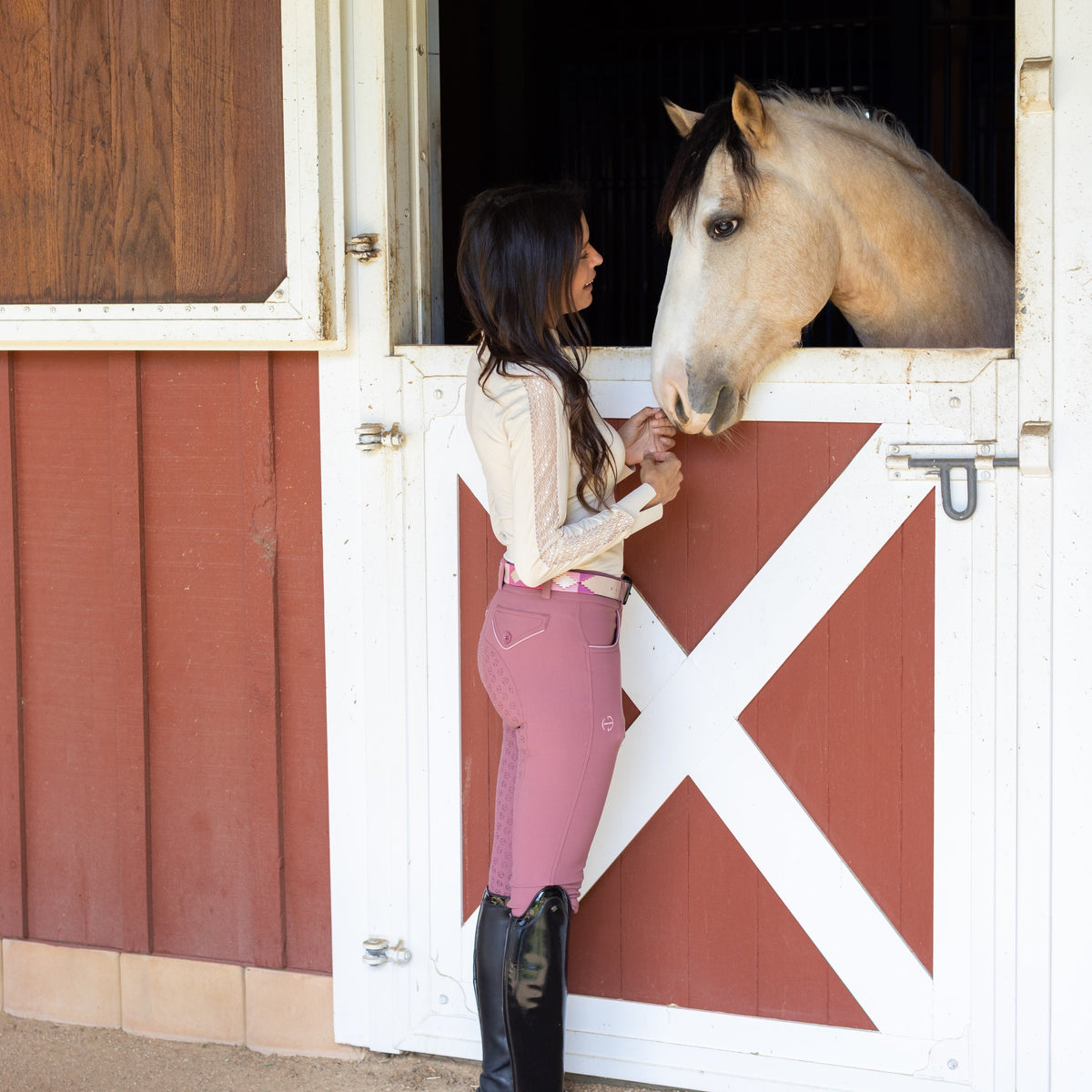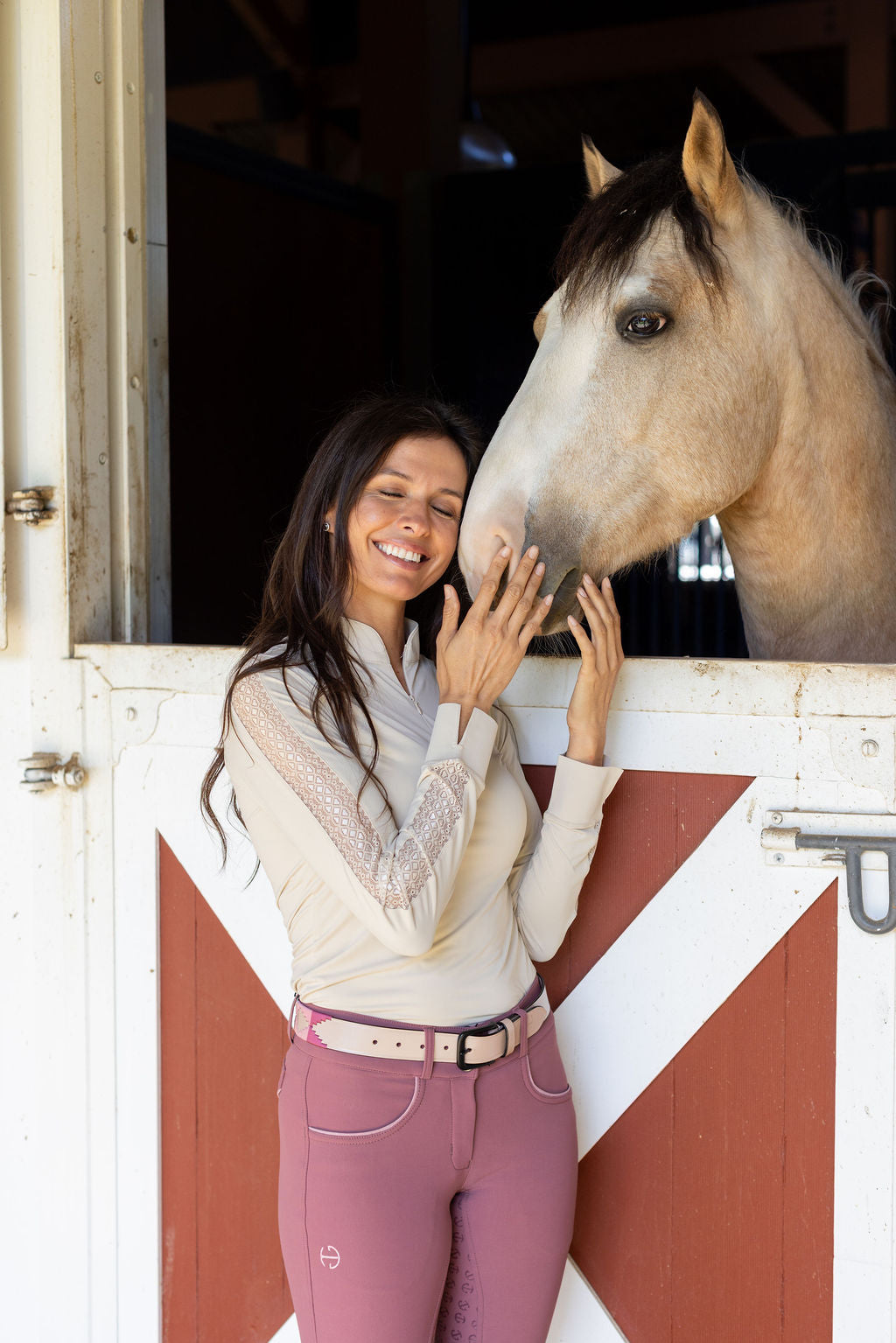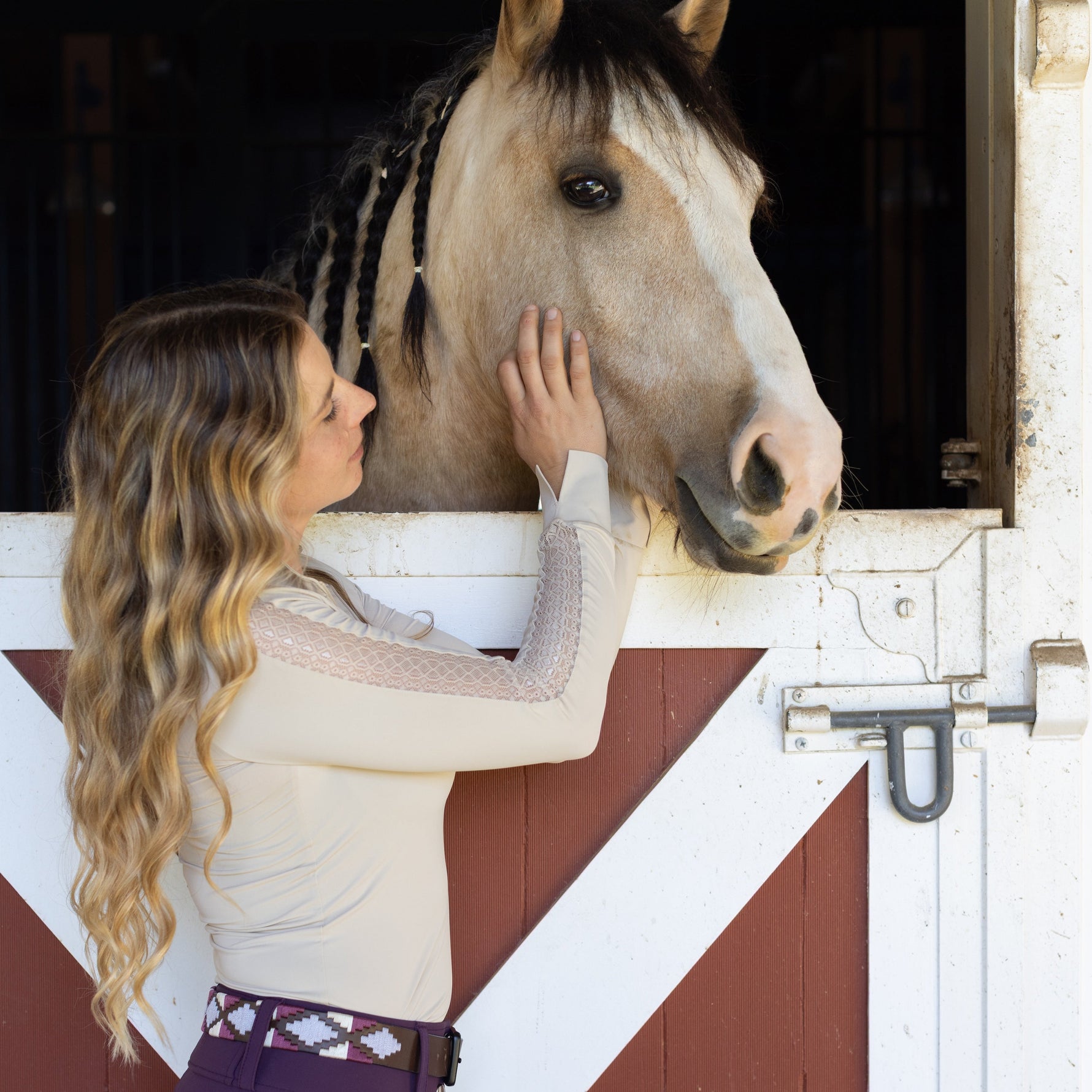 Annabelle - Long Sleeve Lace Riding Top - Latte