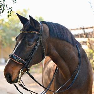 Simply GORGEOUS....the Umbria Rolled Double Bridle blends the sleek lines of rolled leather with the warm glow of cognac accents and the sparkle of premium Austrian crystals.