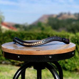 This beautiful Browband from our ‘New Dawn’ Collection is made with gorgeous gradually fading shades of Deep Blue, Light Blue, and Golden Crystals in the center creating a stunning ombré design that truly captures Dusk to Dawn.