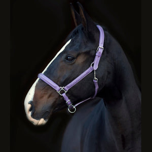 This classic halter design features a gorgeous purple leather with white contrast stitching, ultra soft nappa leather padding on the poll and noseband, and silver hardware. The raised leather design creates a sleek and elevated look.