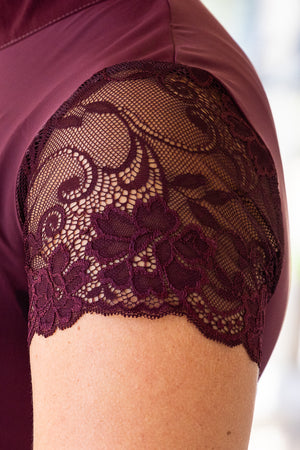 Tara Short Sleeve Lace Competition Shirt - Burgundy