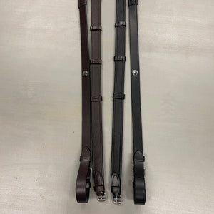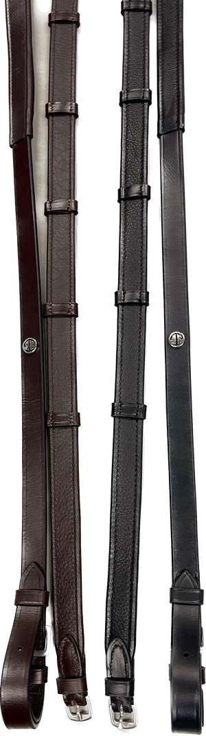 The perfect choice of reins for your hands! These reins are convenient for somebody looking to have a wider grip between their hands. The width eases the pressure in the fingers while keeping perfect contact with the horse's bit, thanks to the stoppers. Great for schooling and at shows!