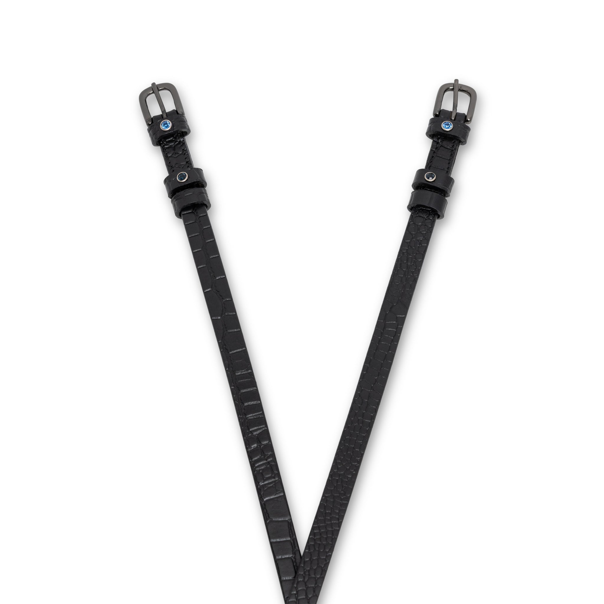 A stylish finishing touch, these croc embossed leather spur straps match perfectly with the Doc Marten snaffle bridle.