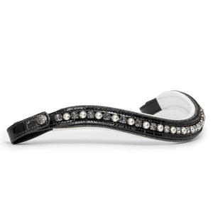 Black patent croc embossed leather and plush white padding contrast beautifully, providing the perfect backdrop to the pearl cabochon and crystal browband.