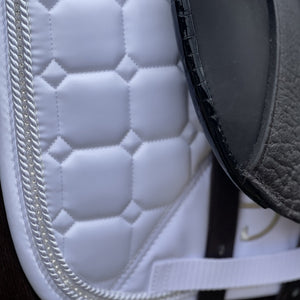 Stunning Dressage Competition Saddle Pad with rounded edges, high wither design, new quilting pattern and subtle crystal piping - this dressage saddle pad is certain to turn heads!