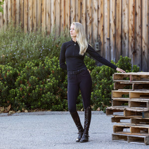 Heidi - Long Sleeve Riding Top with Crystal Fabric Trim