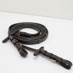 Brown Leather Rubber Lined Flat Reins With Stops and Brass Hardware