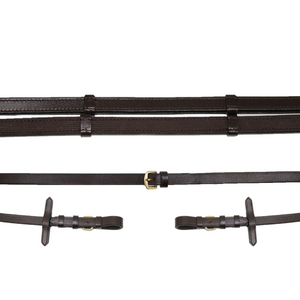 Soft leather reins are 5/8" wide with thin rubber lining.