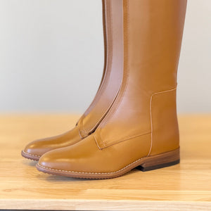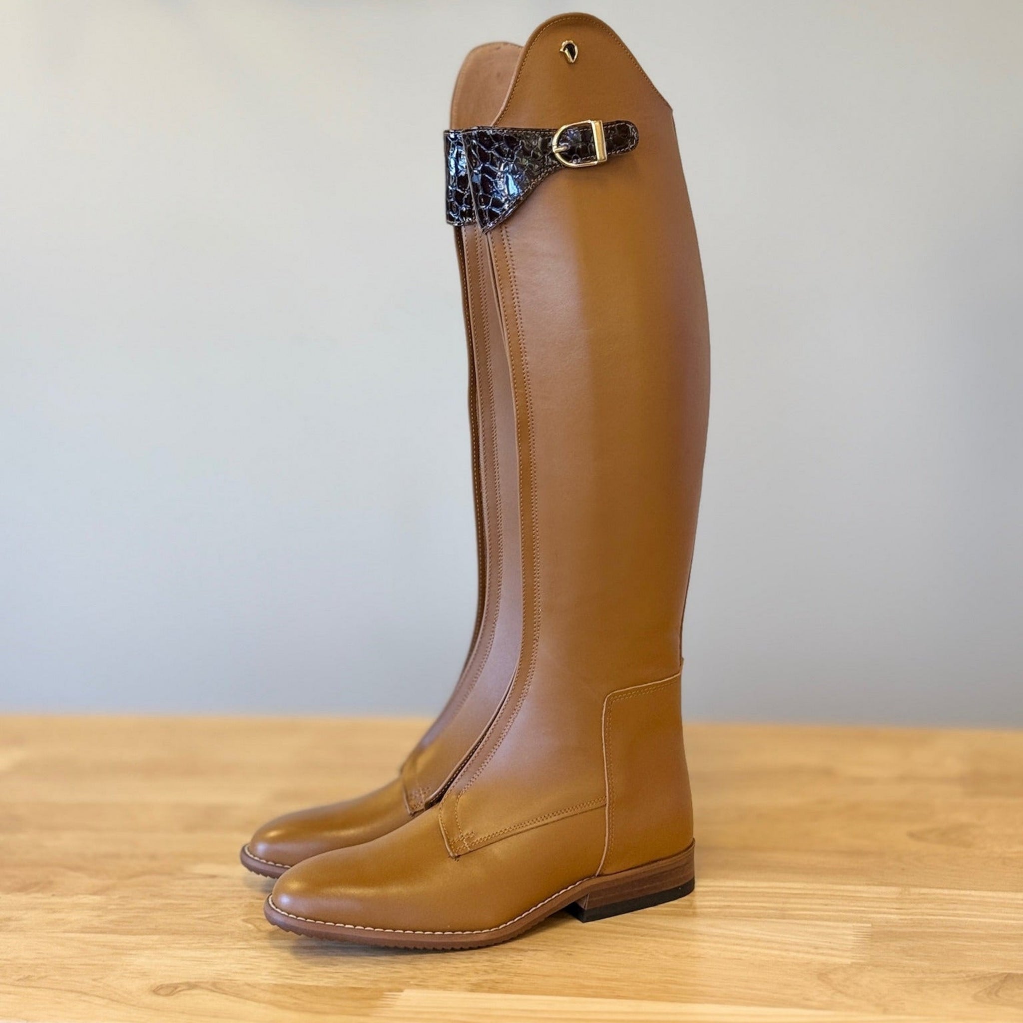 Stunning Derby Polo Boots in Cognac Leather with Brown Patent Croc strap closure